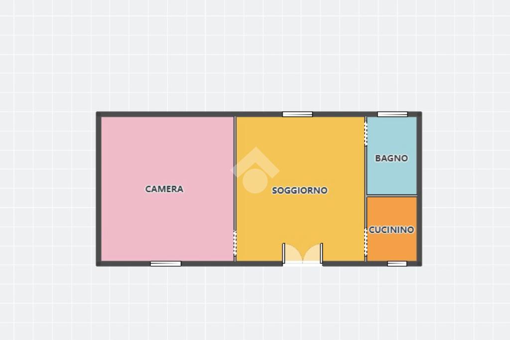 L'appartamento si estende su una superficie di 36 mq. Tramite porta-finestra si accede direttamente sull'ampio soggiorno, questo è affiancato da un funzionale cucinino, ideale per cucinare senza far disperdere gli odori all'interno dell'appartamento. Mentre, la zona notte è composta da una camera da letto matrimoniale.