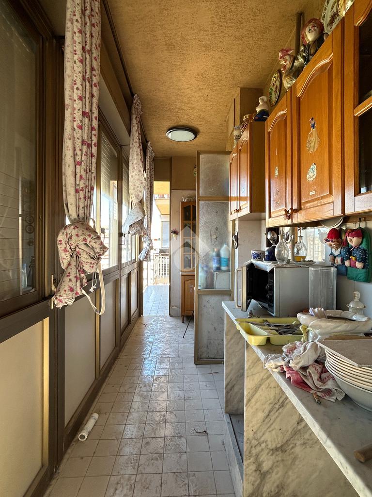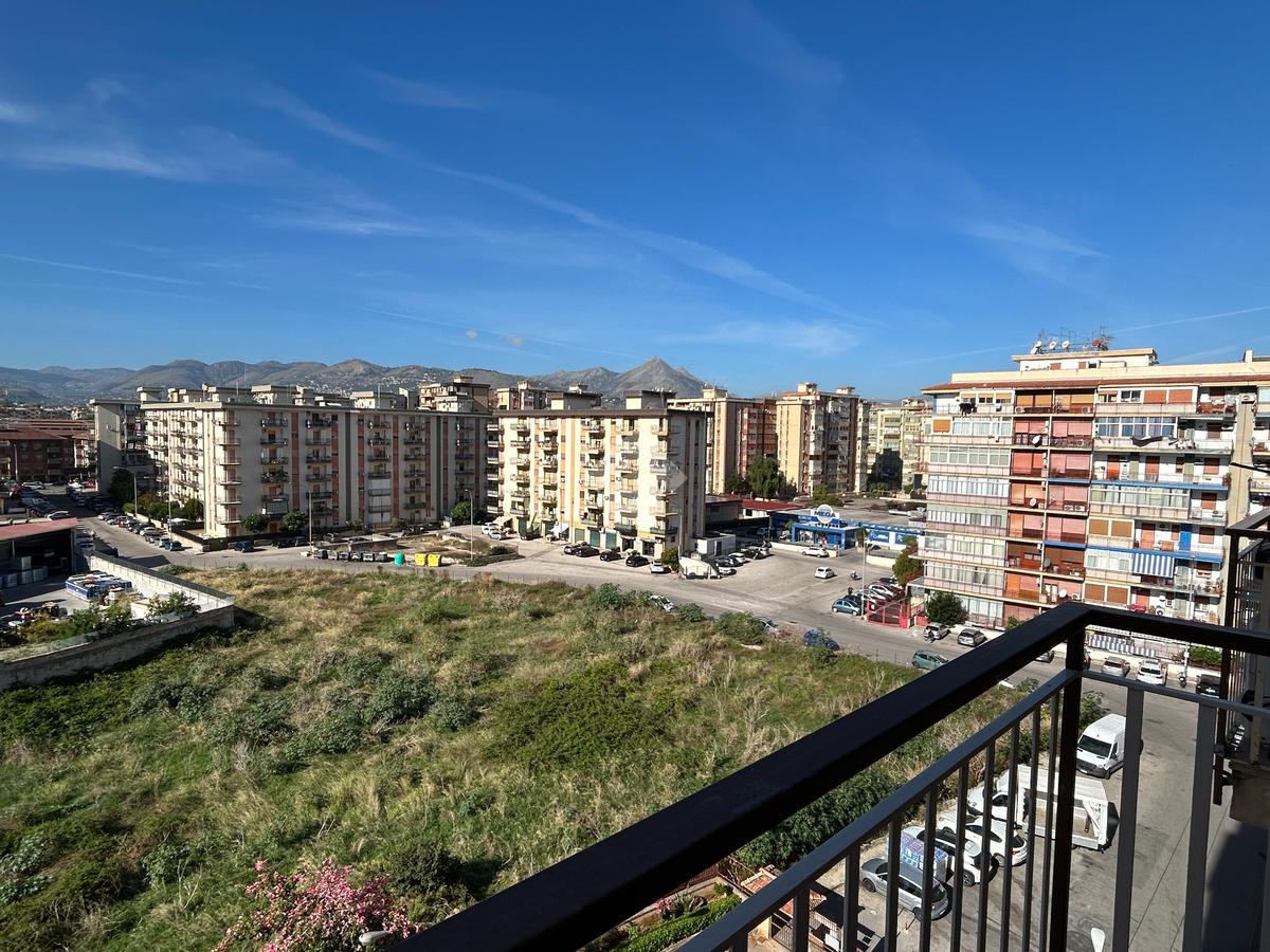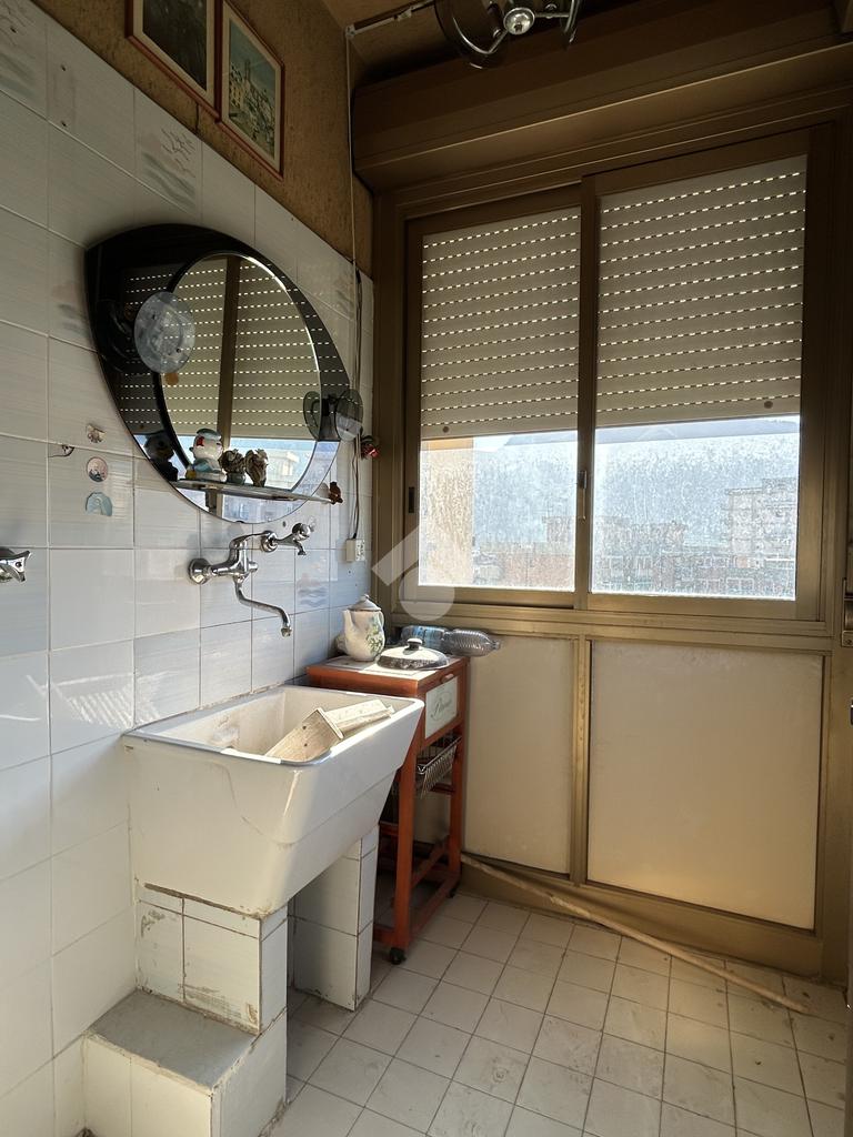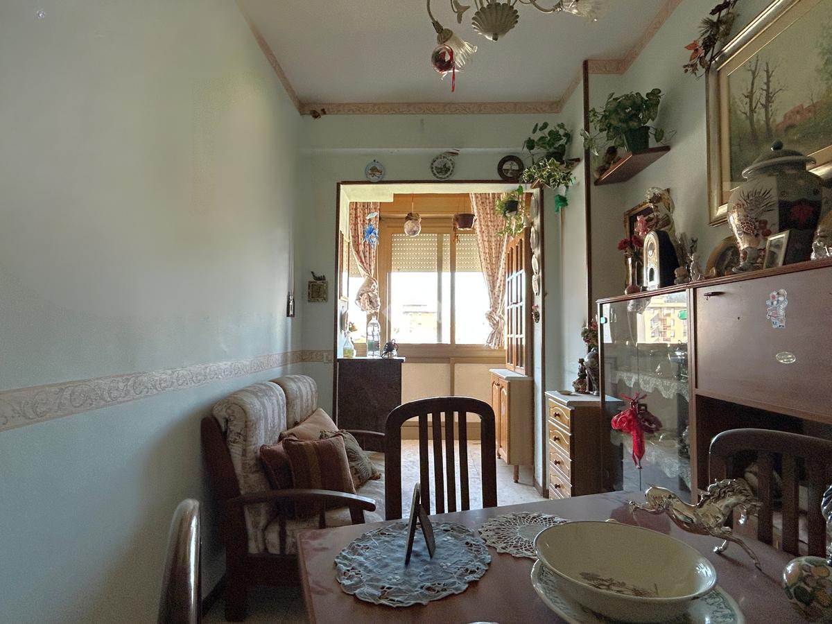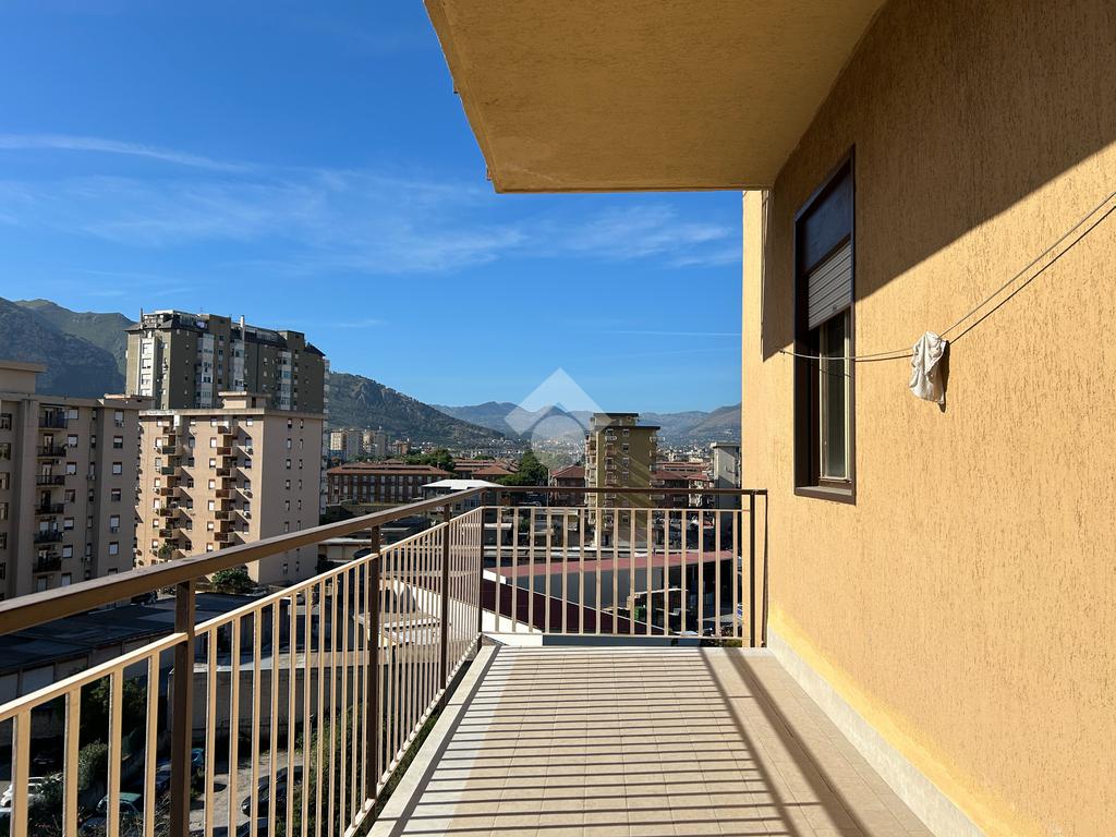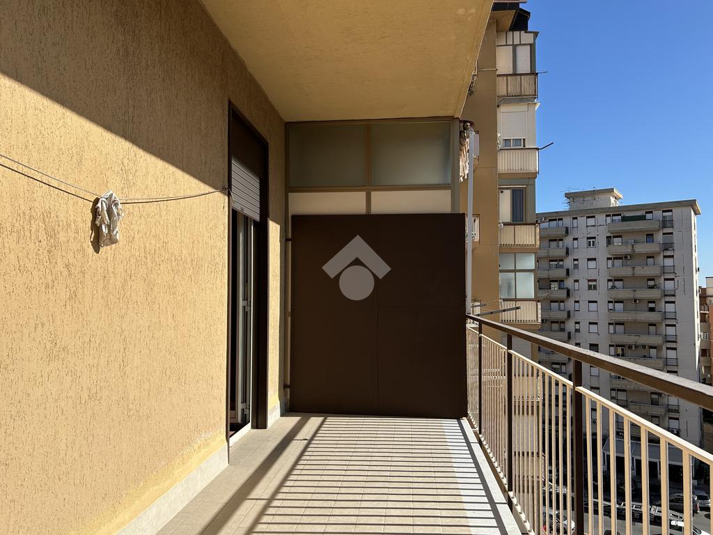 L'appartamento si estende su una superficie di 100 mq. ca. Tramite porta blindata l'ingresso conduce a un corridoio che disimpegna i vari ambienti. Sul lato destro troviamo l'ampio soggiorno di 25 mq. con accesso al primo balcone che espone sia sull'area condominiale che su Largo Vaiana e, adiacente al soggiorno troviamo la cucina semi-abitabile con accesso all'ampio balcone verandato. Sul lato sinistro, rispetto all’ingresso, troviamo la camera matrimoniale e la cameretta, questa con accesso al secondo balcone dal quale è possibile ammirare il panorama tipico della zona: tra palazzi e montagne.