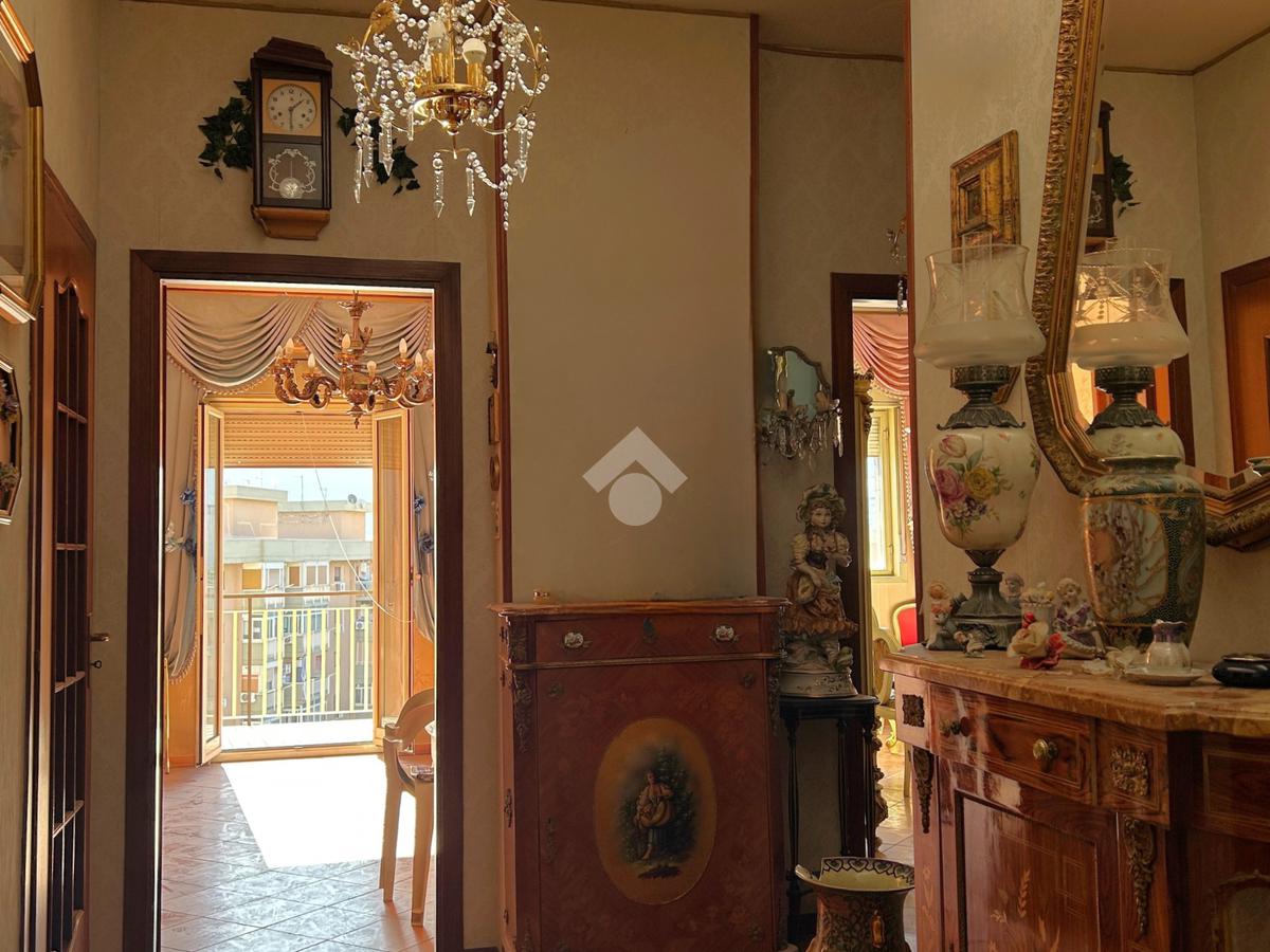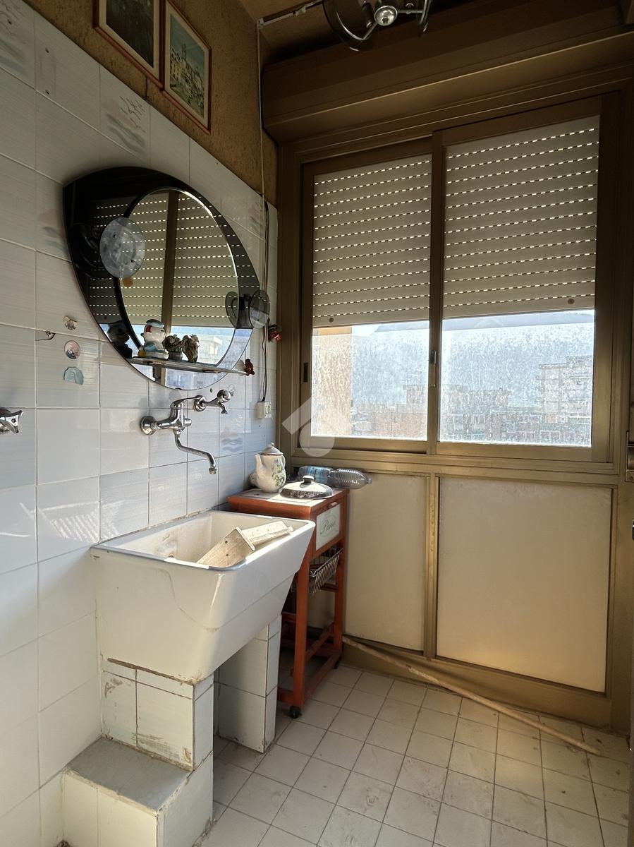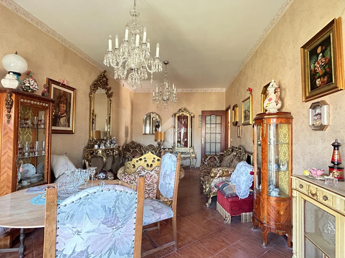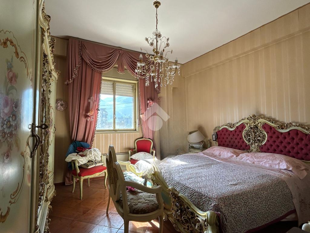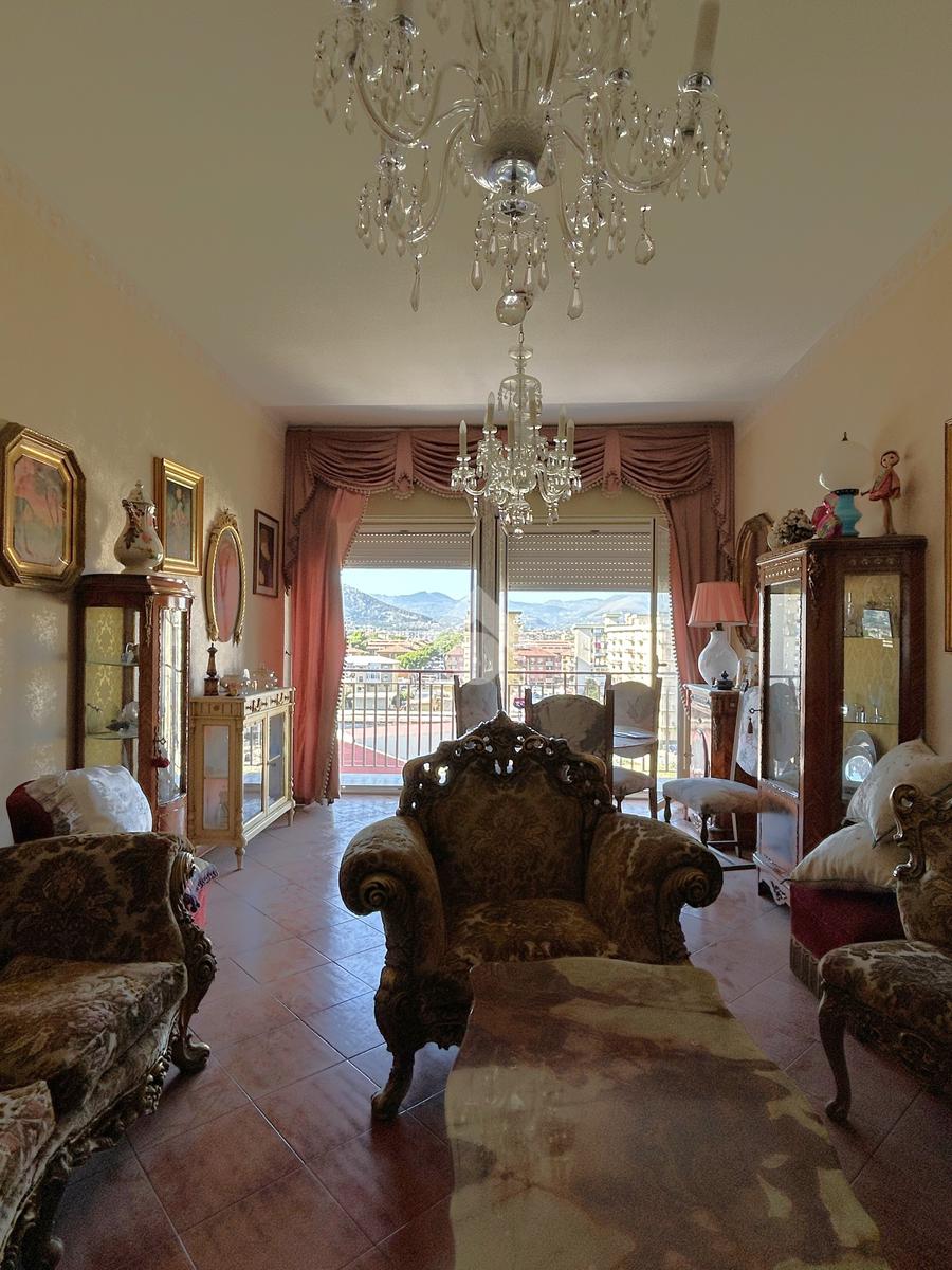 L'appartamento si estende su una superficie di 100 mq. ca. Tramite porta blindata l'ingresso conduce a un corridoio che disimpegna i vari ambienti. Sul lato destro troviamo l'ampio soggiorno di 25 mq. con accesso al primo balcone che espone sia sull'area condominiale che su Largo Vaiana e, adiacente al soggiorno troviamo la cucina semi-abitabile con accesso all'ampio balcone verandato. Sul lato sinistro, rispetto all’ingresso, troviamo la camera matrimoniale e la cameretta, questa con accesso al secondo balcone dal quale è possibile ammirare il panorama tipico della zona: tra palazzi e montagne.