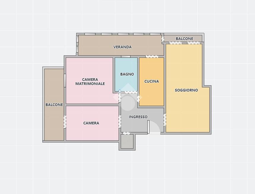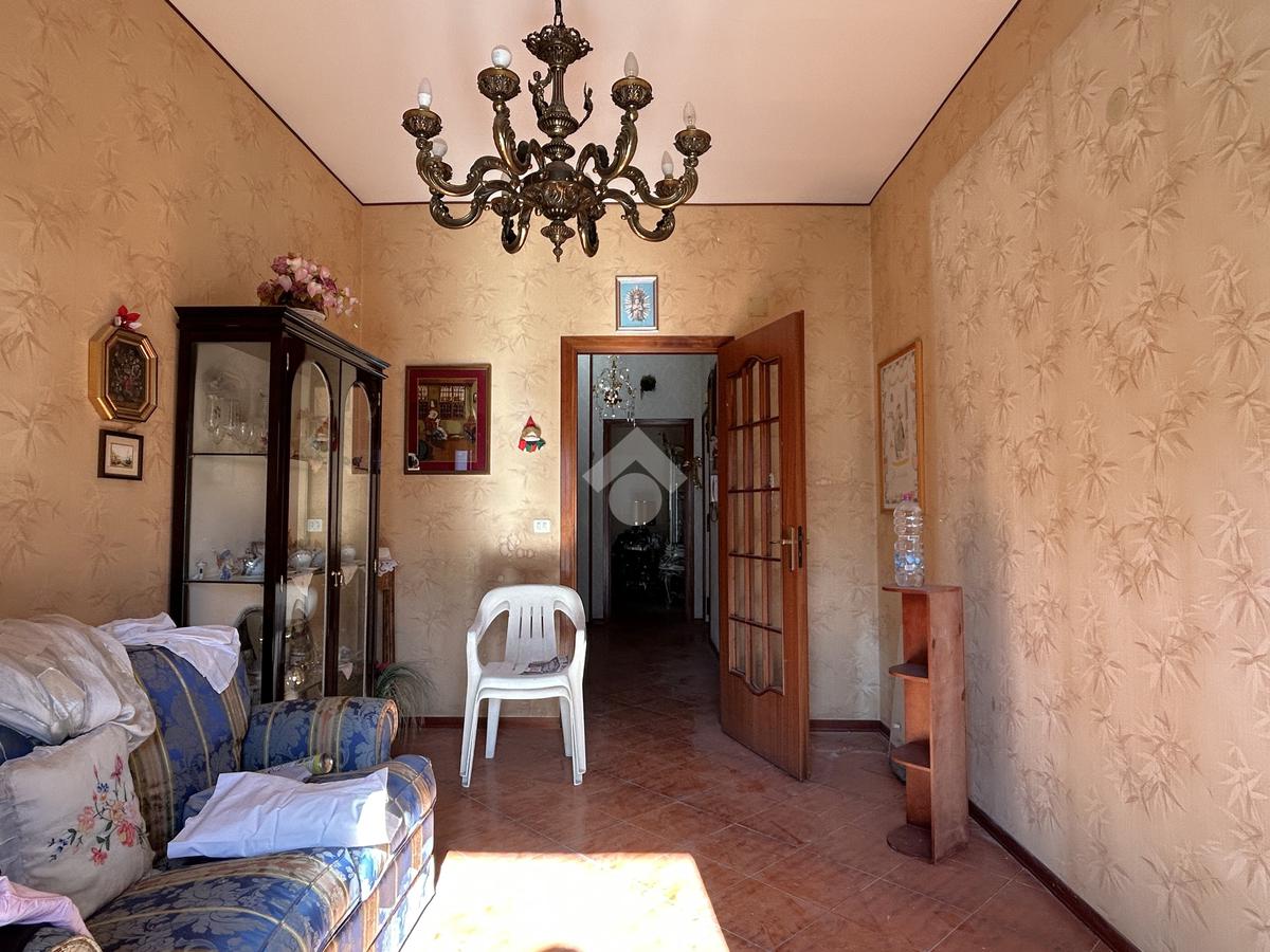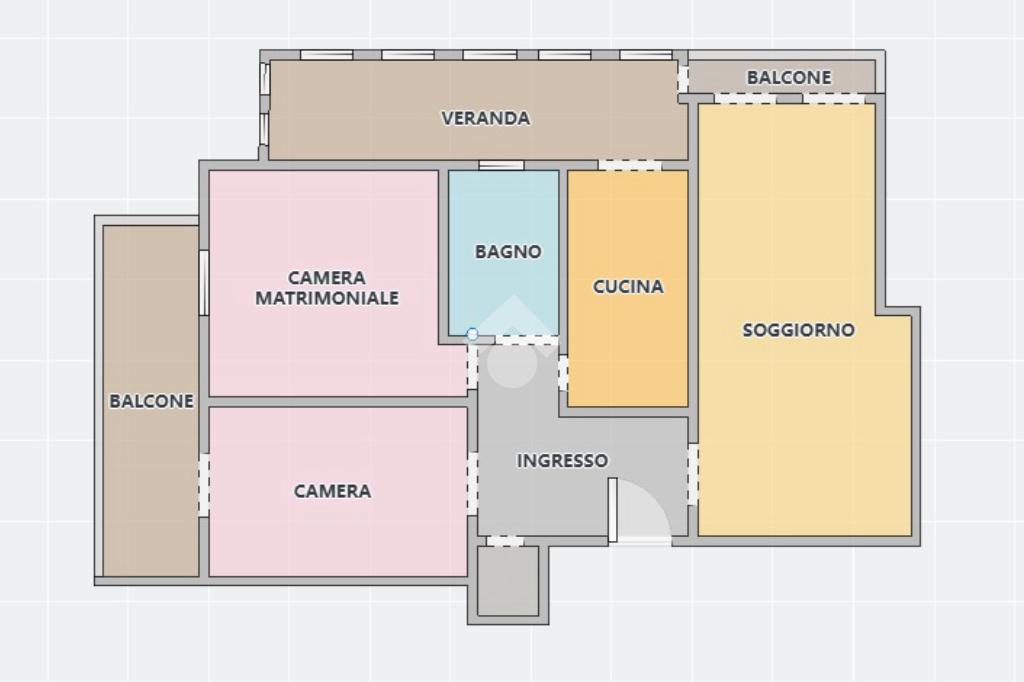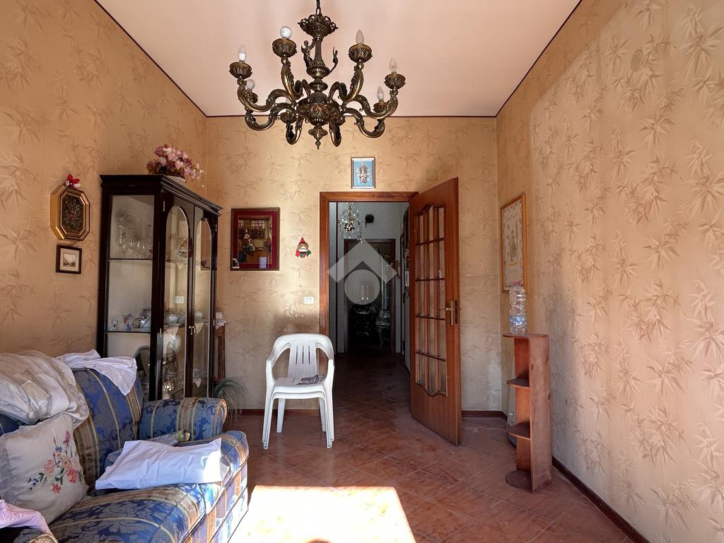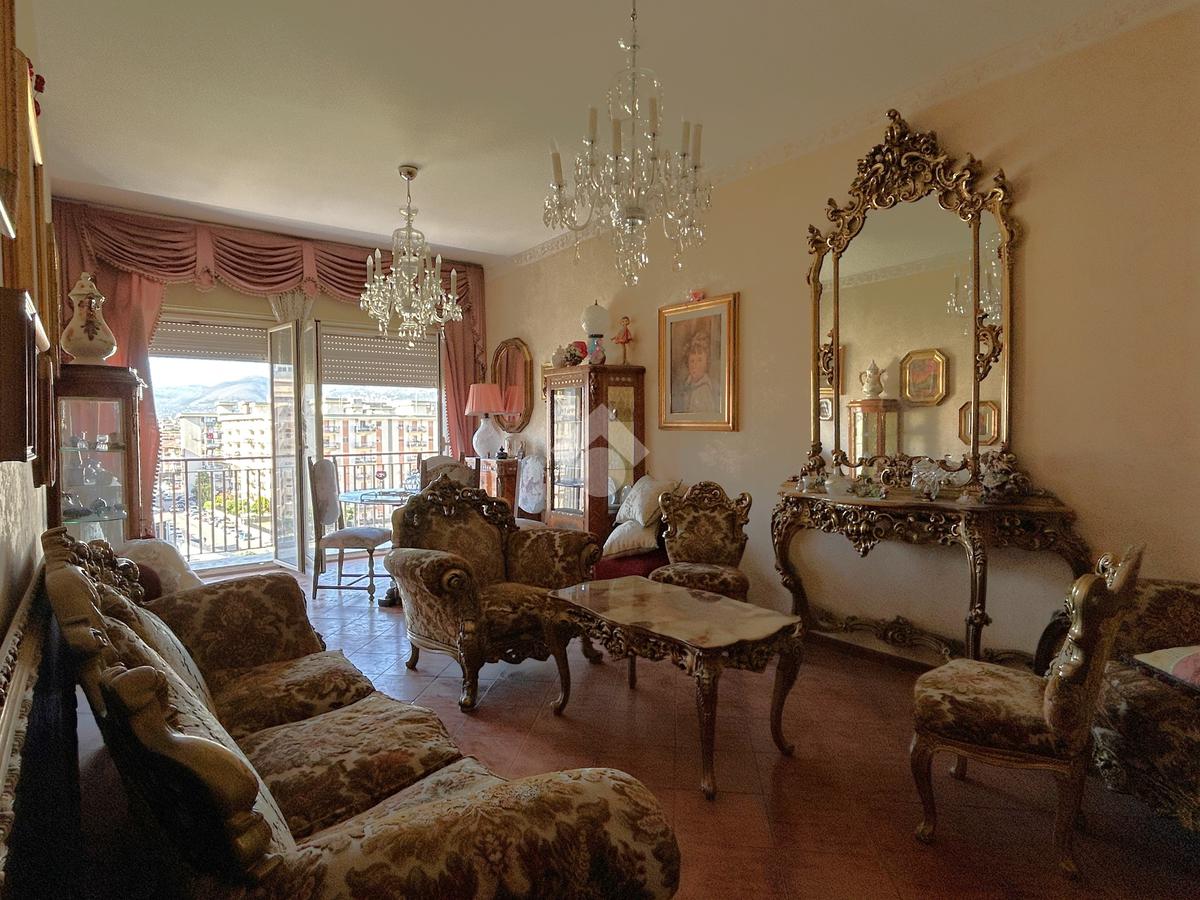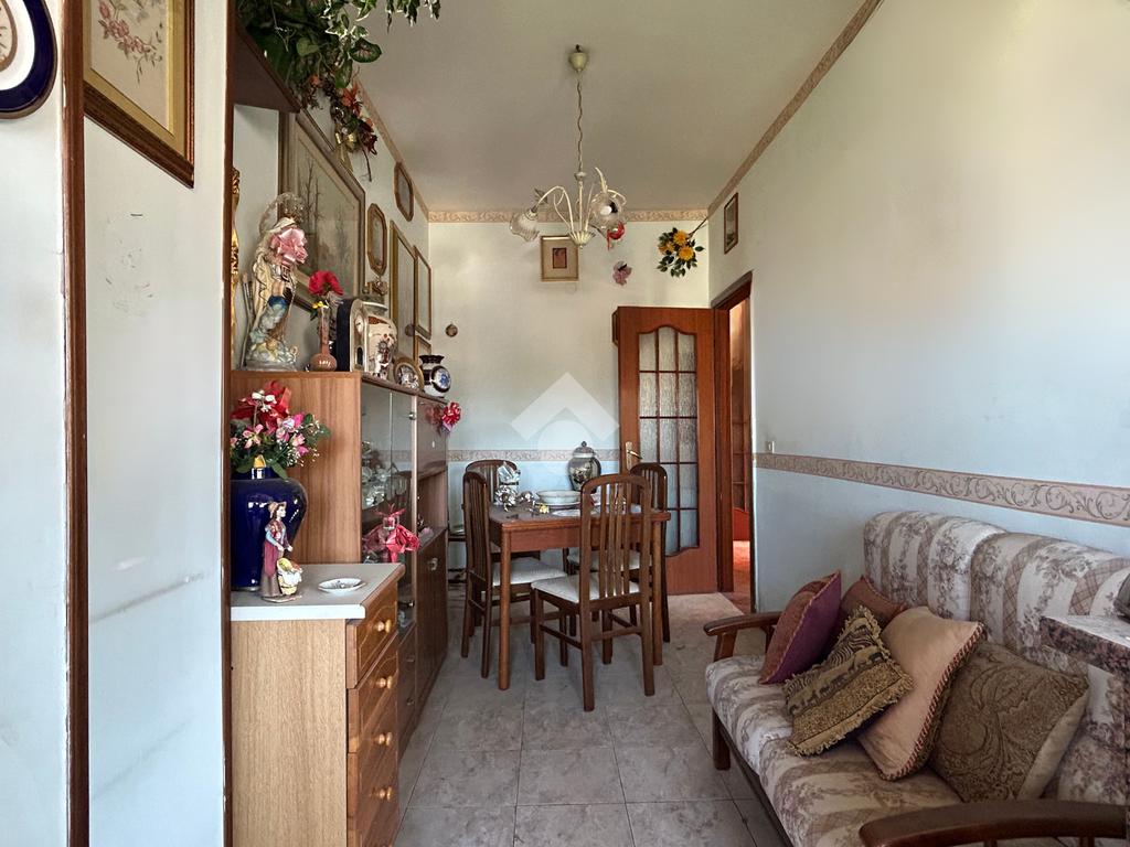 L'appartamento si estende su una superficie di 100 mq. ca. Tramite porta blindata l'ingresso conduce a un corridoio che disimpegna i vari ambienti. Sul lato destro troviamo l'ampio soggiorno di 25 mq. con accesso al primo balcone che espone sia sull'area condominiale che su Largo Vaiana e, adiacente al soggiorno troviamo la cucina semi-abitabile con accesso all'ampio balcone verandato. Sul lato sinistro, rispetto all’ingresso, troviamo la camera matrimoniale e la cameretta, questa con accesso al secondo balcone dal quale è possibile ammirare il panorama tipico della zona: tra palazzi e montagne.