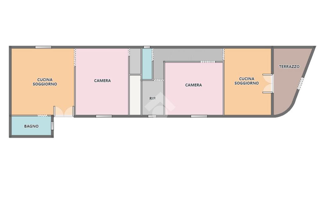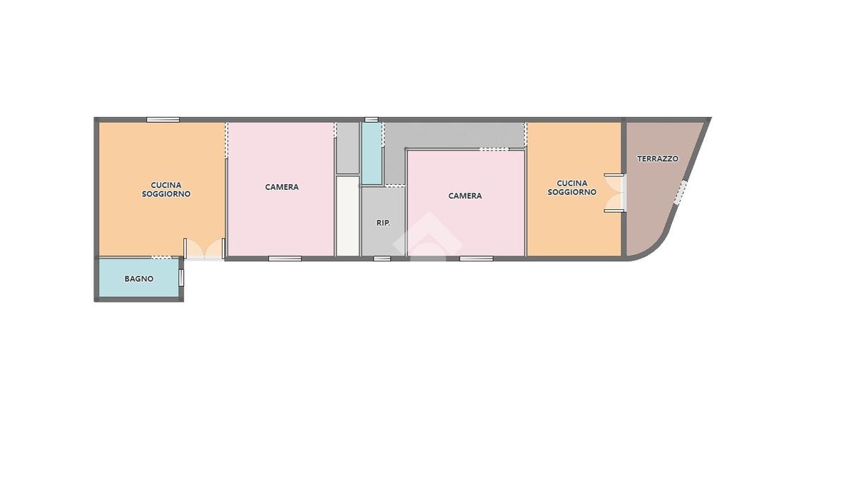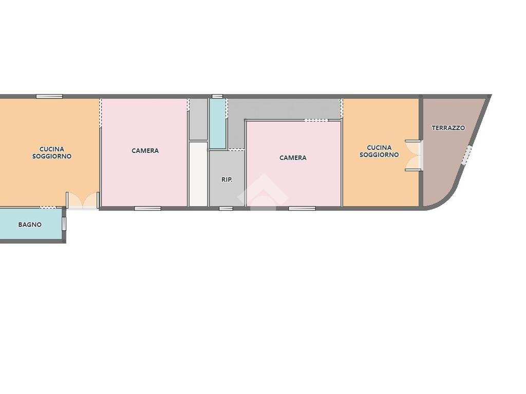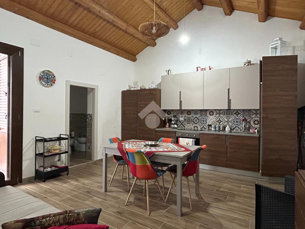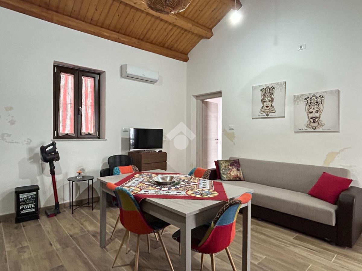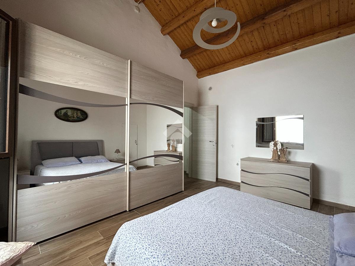 L'appartamento si estende su una superficie di 115 mq. ca. e presenta due ingressi indipendenti l'uno dall'altro. Dal primo ingresso si accede alla parte dell'immobile recentemente ristrutturato (nel 2018) e si presenta con accesso direttamente su un'ampia cucina-soggiorno di 22 mq., la camera matrimoniale ed il bagno con doccia.