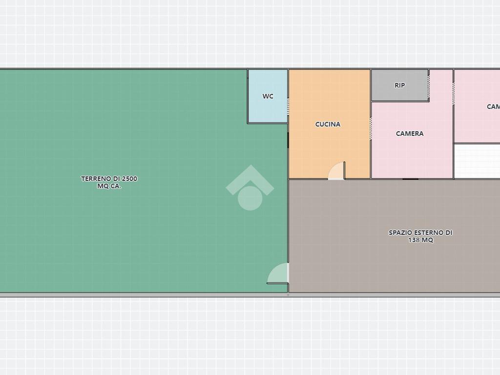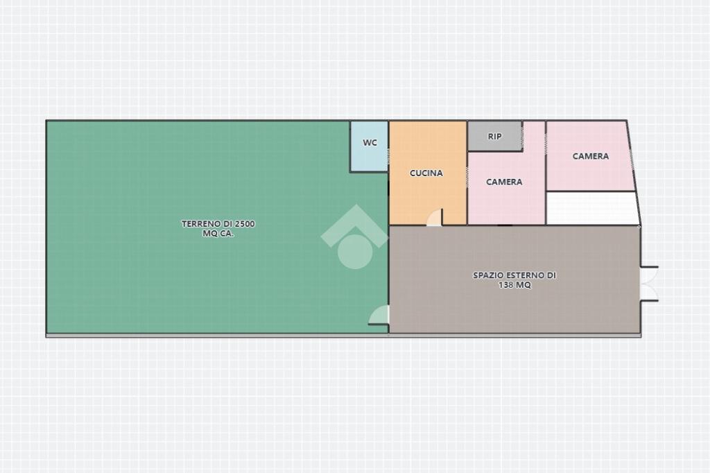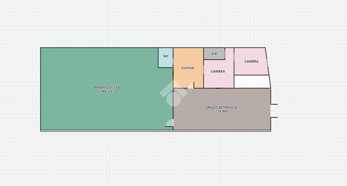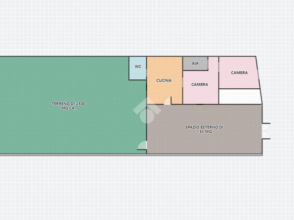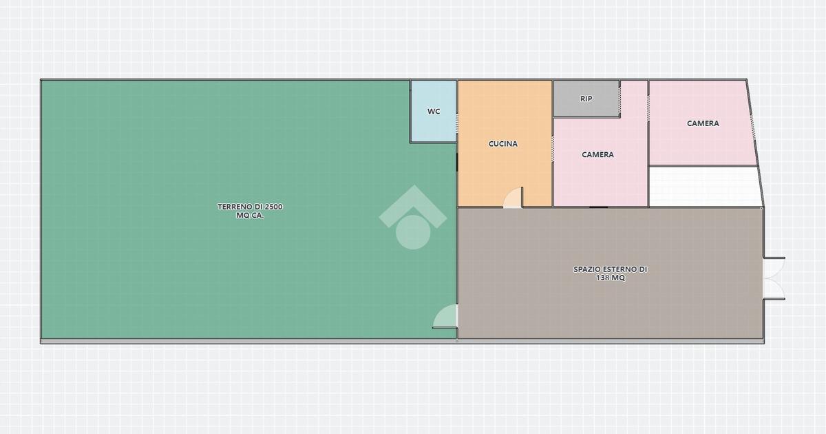 La struttura si estende su una superficie di 80 mq. ca. e al suo interno sono presenti tre ambienti. Inoltre, presenta uno spazio esterno pavimentato, da poter dedicare o a numerosi posti auto oppure a diverse attività da poter fare all'area aperta, di 138 mq. ca. oltre il terreno di 2.500 mq. ca. di esclusiva pertinenza.